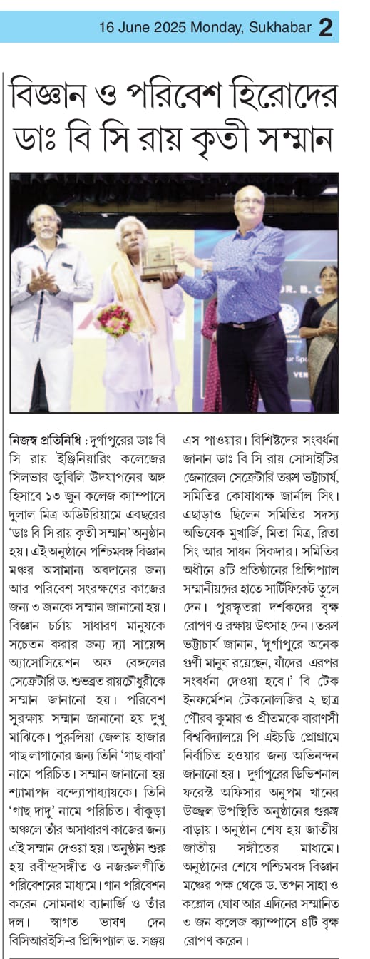 Dr. B. C. Roy Kriti Samman 2025 Honors Environmental HeroesOn June 13, 2025, Dr. B. C. Roy Engineeri